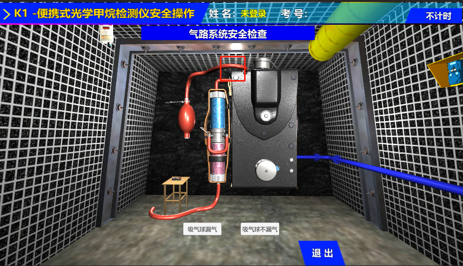 本套裝置由煤礦瓦斯檢查作業(yè)實操設(shè)備和智能模擬設(shè)備結(jié)合,可讓學(xué)員進(jìn)行便攜式光學(xué)甲烷檢測儀安全操作(K1)和甲烷、二氧化碳、一氧化碳濃度檢測安全操作(K2),既能實現(xiàn)以上科目的實際操作,又可通過設(shè)備上安裝的傳感器同步采集學(xué)員操作數(shù)據(jù),同時由系統(tǒng)生成模擬氣體,讓學(xué)員使用真是光學(xué)甲烷檢測儀進(jìn)行測量,由系統(tǒng)判斷對錯,并將評分最終成績上傳管理服務(wù)器,實現(xiàn)虛擬與實操相結(jié)合。
